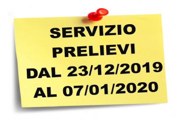 Leggi tuttoSERVIZIO PRELIEVI DURANTE LE FESTIVITA’ NATALIZIE