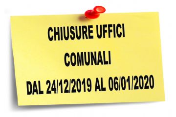CHIUSURE UFFICI COMUNALI DAL 24/12/2019 AL 06/01/2020